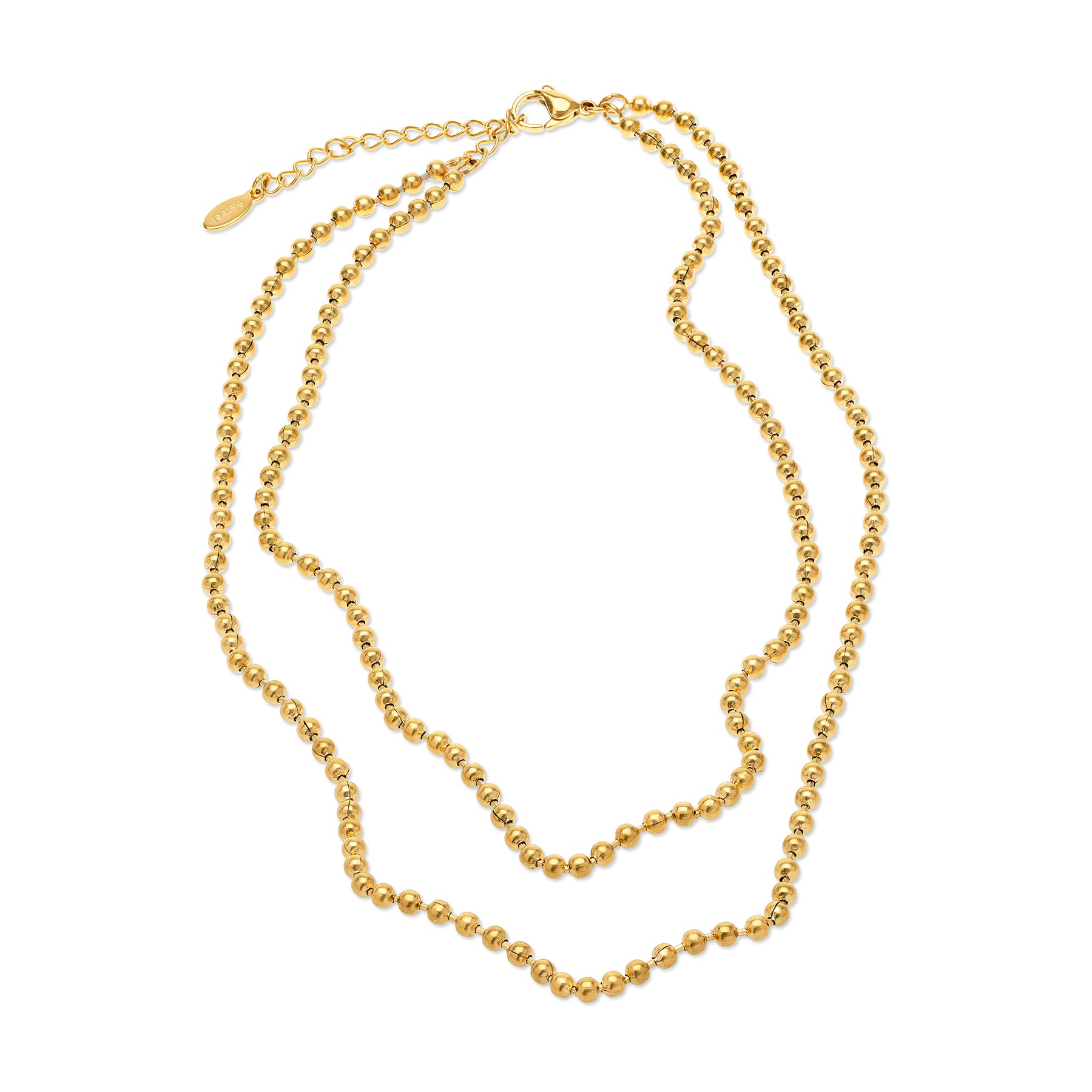 Design moderno con questa collana a doppia catena a palline. Questa delicata collana in acciaio inossidabile presenta due eleganti catene a palline di lunghezze diverse. È resistente all'acqua e non si ossida per uno stile sobrio.