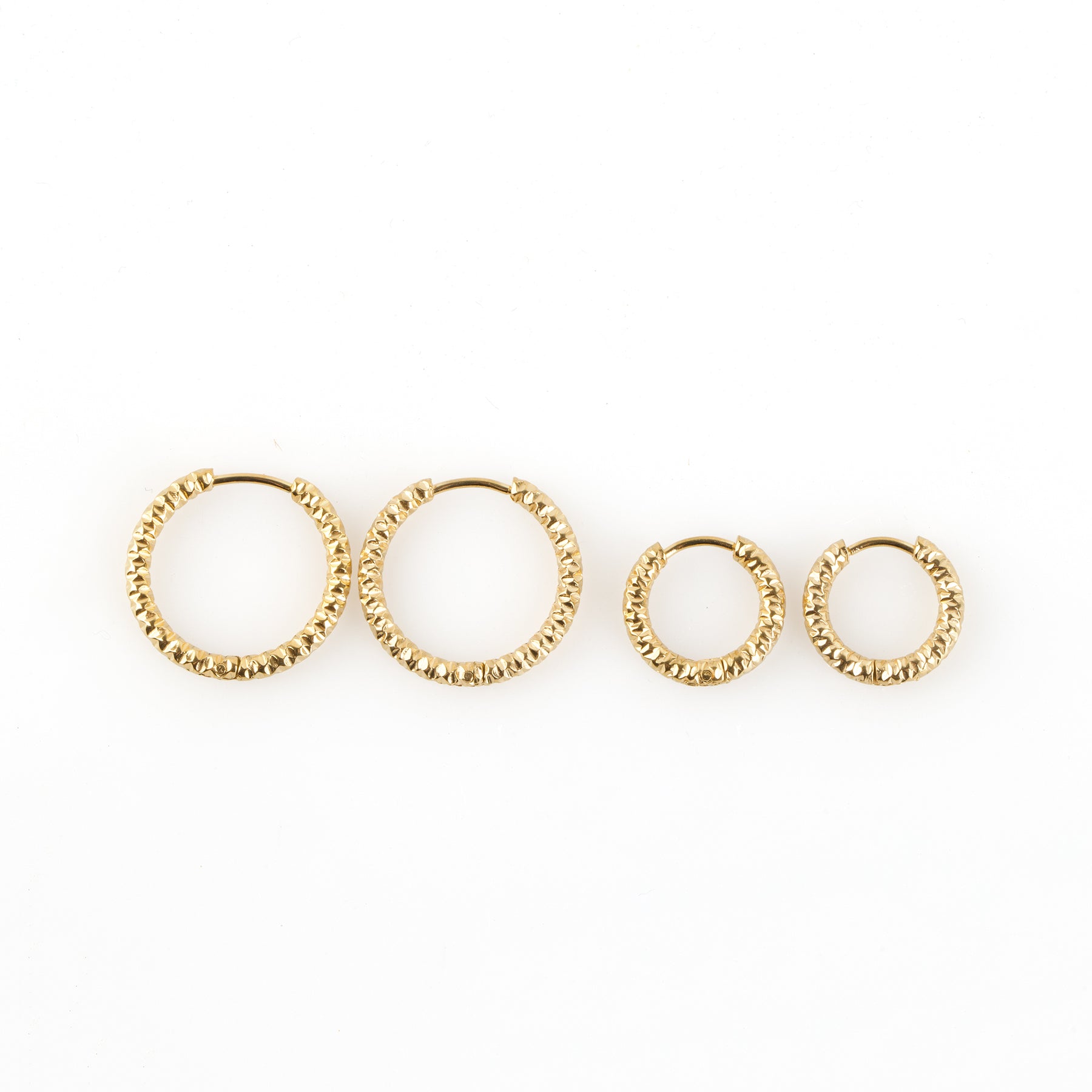 Orecchini a cerchio essenziali per tutti i giorni con un design strutturato. Questi classici cerchi leggeri in acciaio inossidabile sono resistenti all'acqua e privi di ossidazione per un uso senza sforzo. Disponibili in argento e oro per adattarsi al tuo stile e alle tue esigenze.