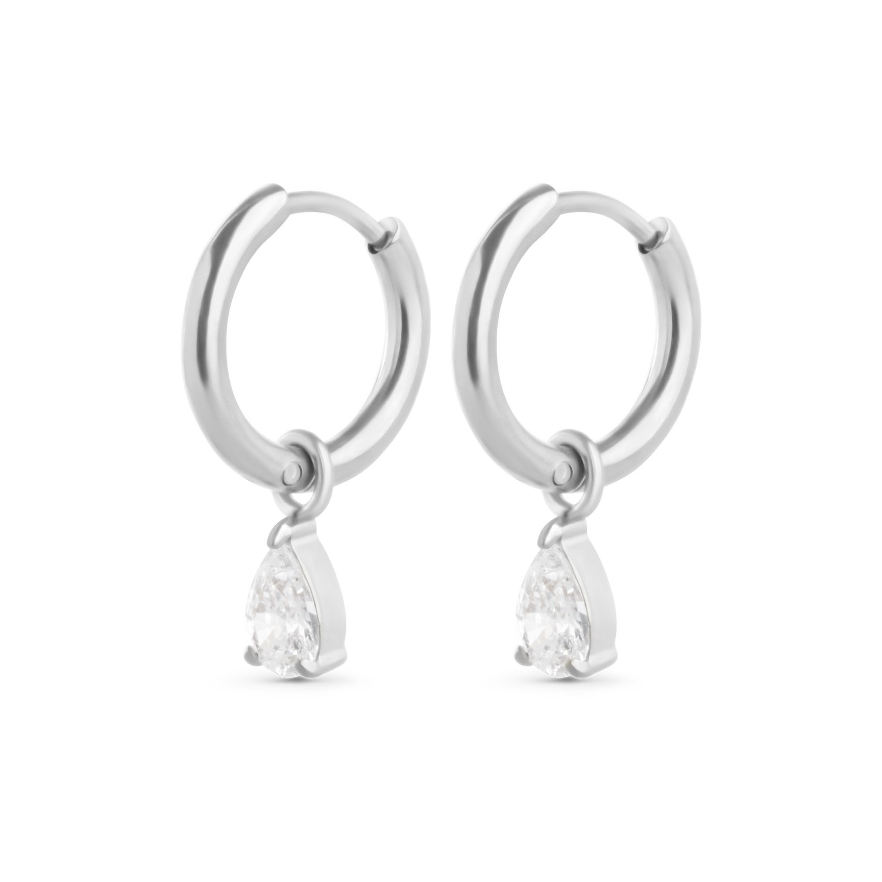 Orecchini a cerchio eleganti con un cristallo pendente. Realizzati in acciaio inossidabile waterproof.