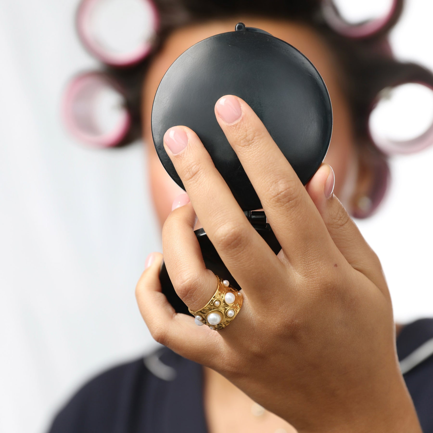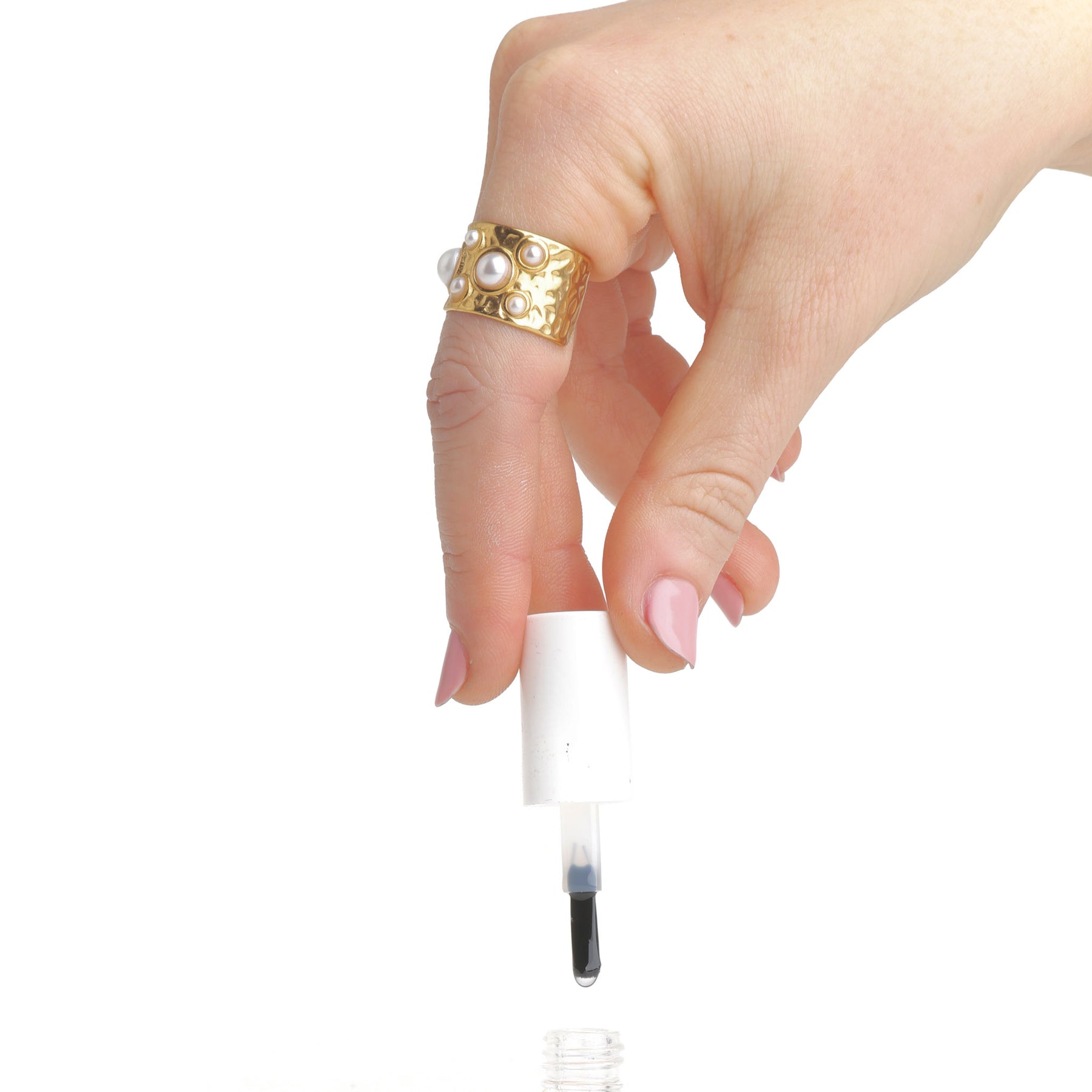 Un anello martellato con dettagli in perla, realizzato in acciaio inossidabile impermeabile.