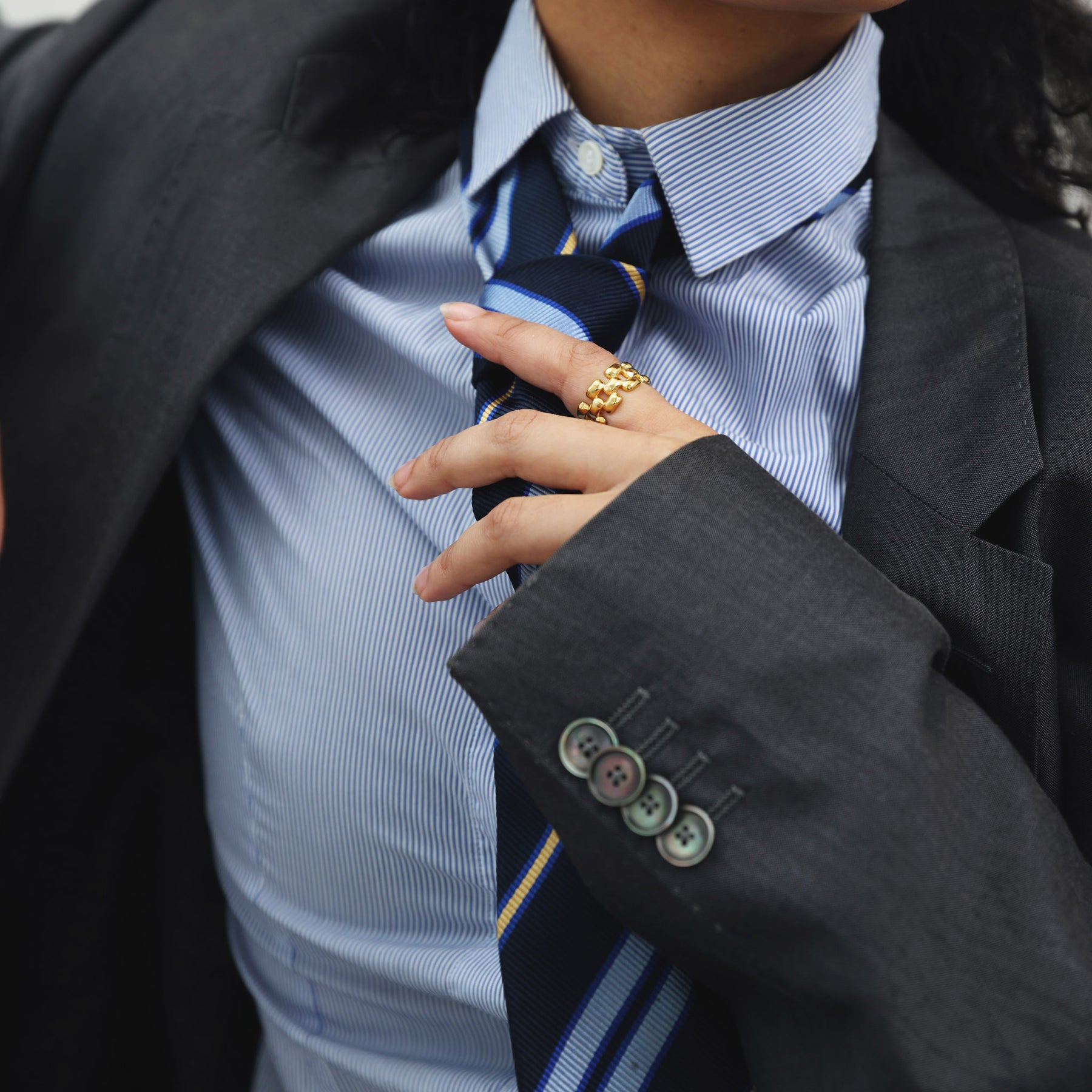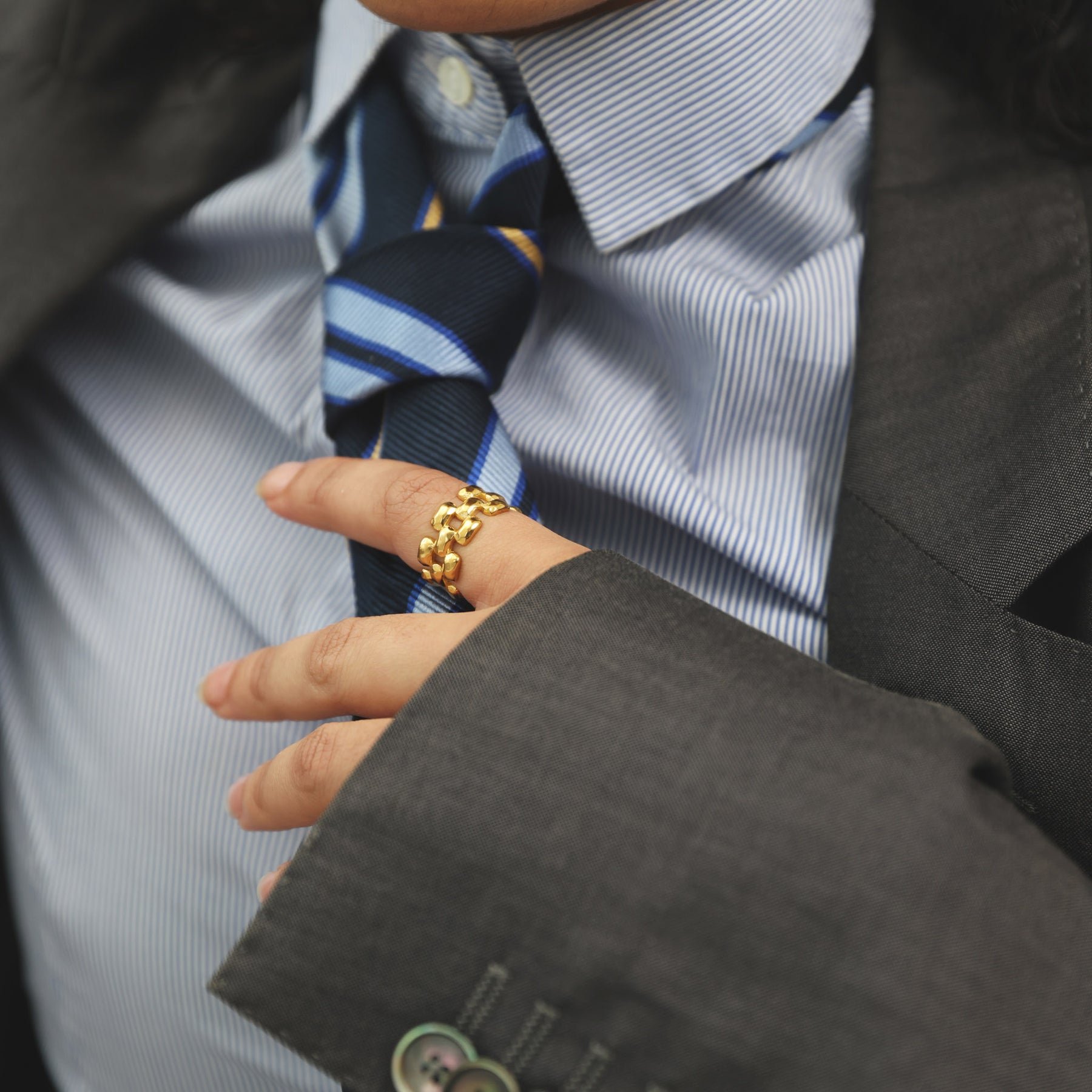 Un anello spesso in acciaio inossidabile waterproof con un design audace e contemporaneo.